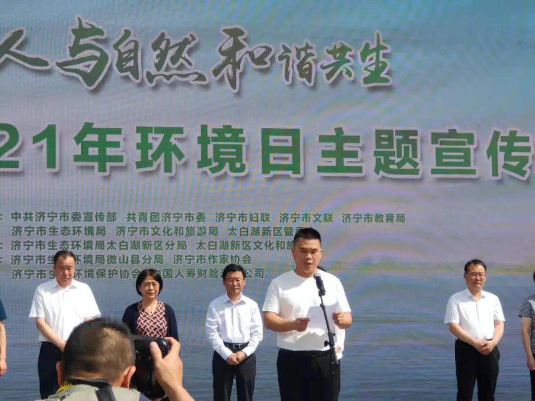 6月5日上午,由中共濟寧市委宣傳部、濟寧市生態(tài)環(huán)境局主辦的濟寧市2021環(huán)境日宣傳活動(dòng)在太白湖景區隆重舉行。今年環(huán)境日宣傳活動(dòng)圍繞“人與自然和諧共生”的主題,旨在喚醒全社會(huì )生物多樣性保護意識,呼吁樹(shù)牢尊重自然、順應自然、保護自然的理念,攜手建設人與自然和諧共生的美麗家園。