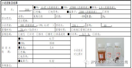 廢水原水為溶劑精餾塔將溶劑精餾回收后,釜底剩余的含鹽廢水,經(jīng)濃縮后進(jìn)入脫水干燥工序,經(jīng)上工序濃縮后的高鹽含氟廢水含鹽量≥190000ppm,廢水成分較為復雜,主要鹽分為氟硼酸鈉、氟硼酸銨,另有少量合成反應產(chǎn)生的側鏈,副反應產(chǎn)物,原水由兩股廢水混合而成。